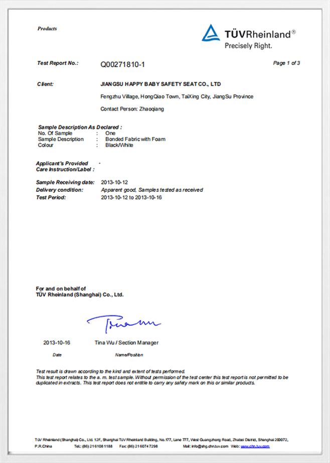 Ngoài cấu trúc vật lý, chúng tôi tiến hành giám sát chặt chẽ của các nhà máy đối tác của chúng tôi. Mỗi thành phần đều trải qua quá trình liên tục Thử nghiệm vật lý và hóa học để đảm bảo không có các chất độc hại, đảm bảo các loại vải tiếp xúc với da của trẻ đều an toàn nhưng vẫn thoải mái.